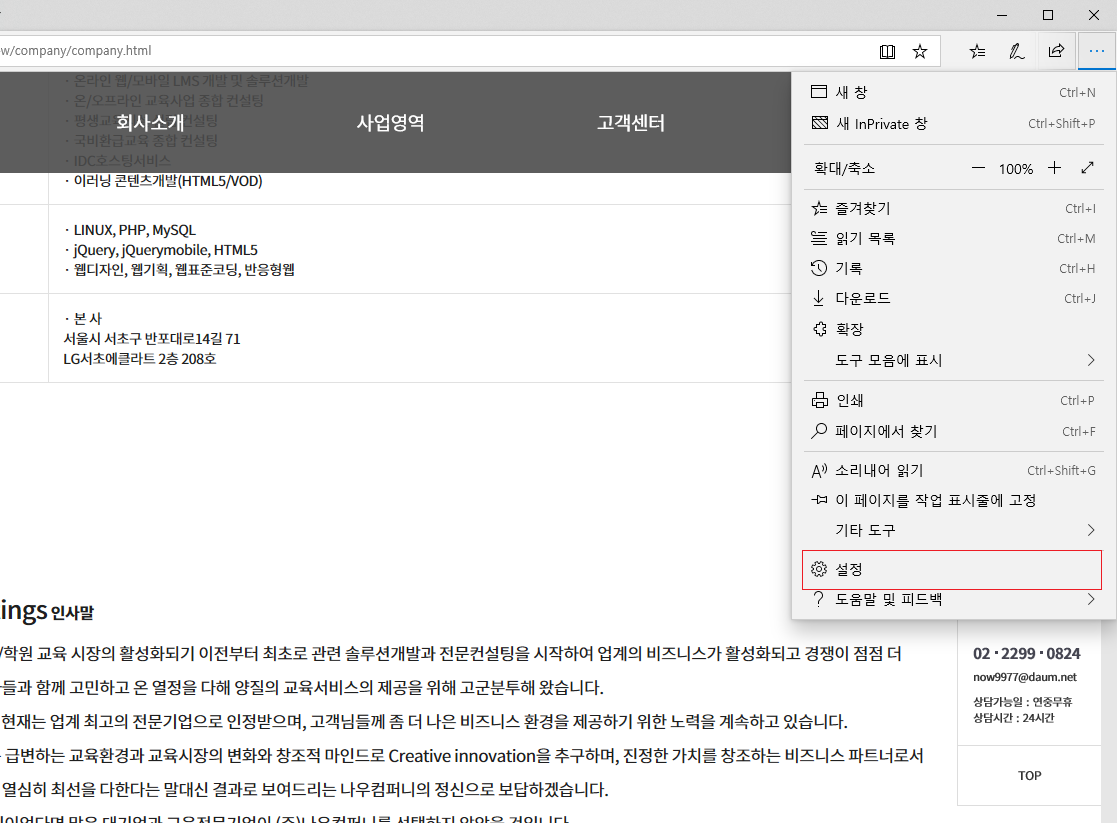 1. 우측 상단 "맞춤설정 및 제어" 버튼 클릭 > [설정] 클릭